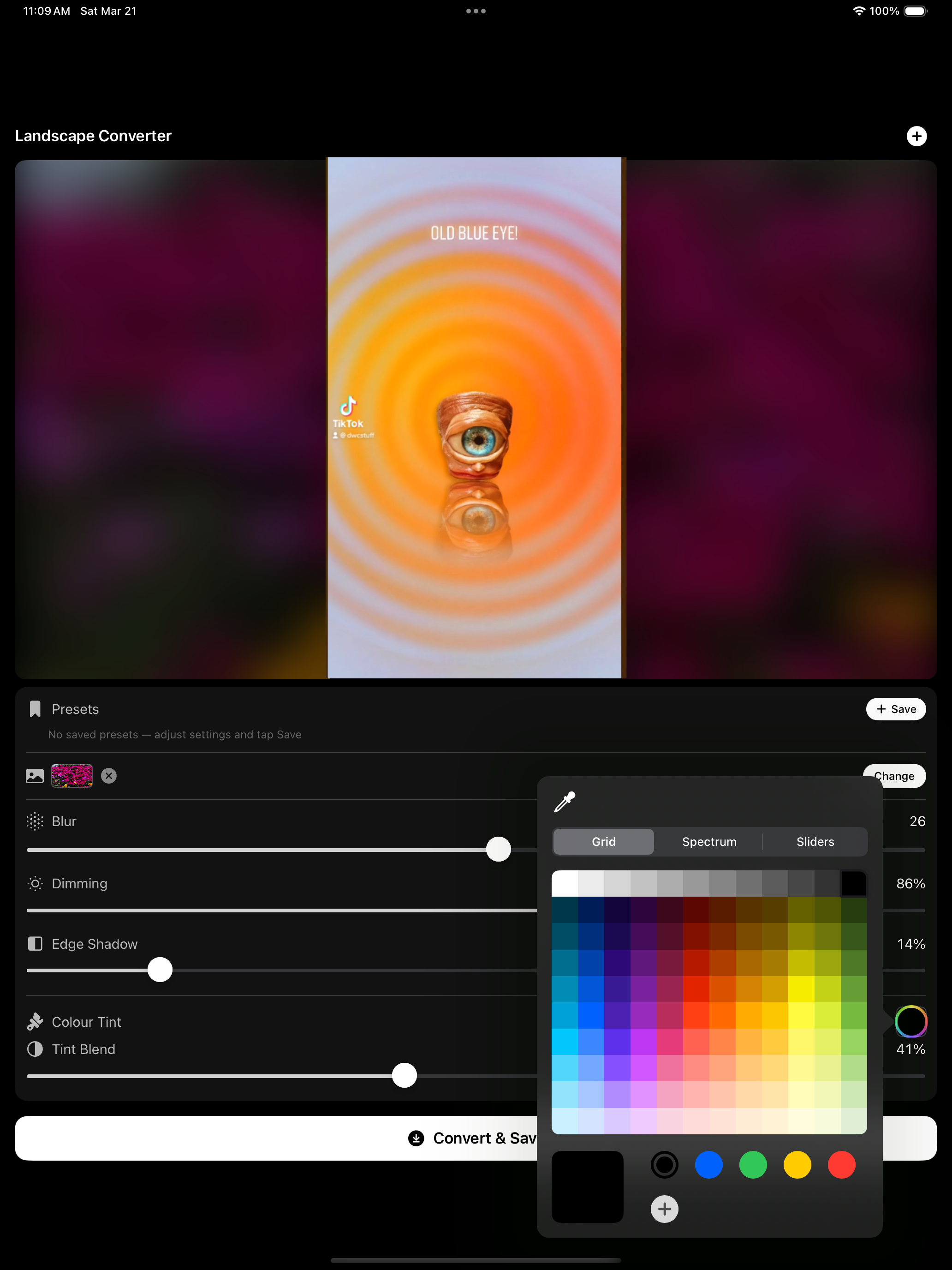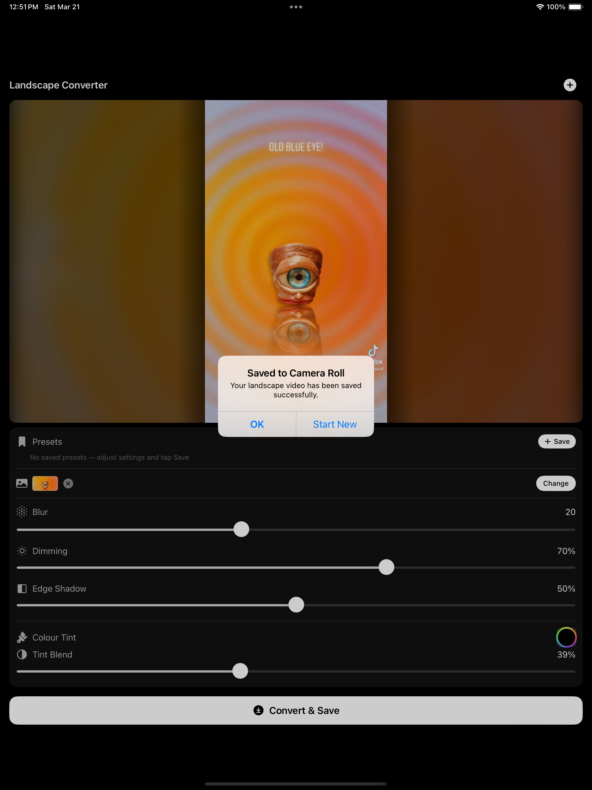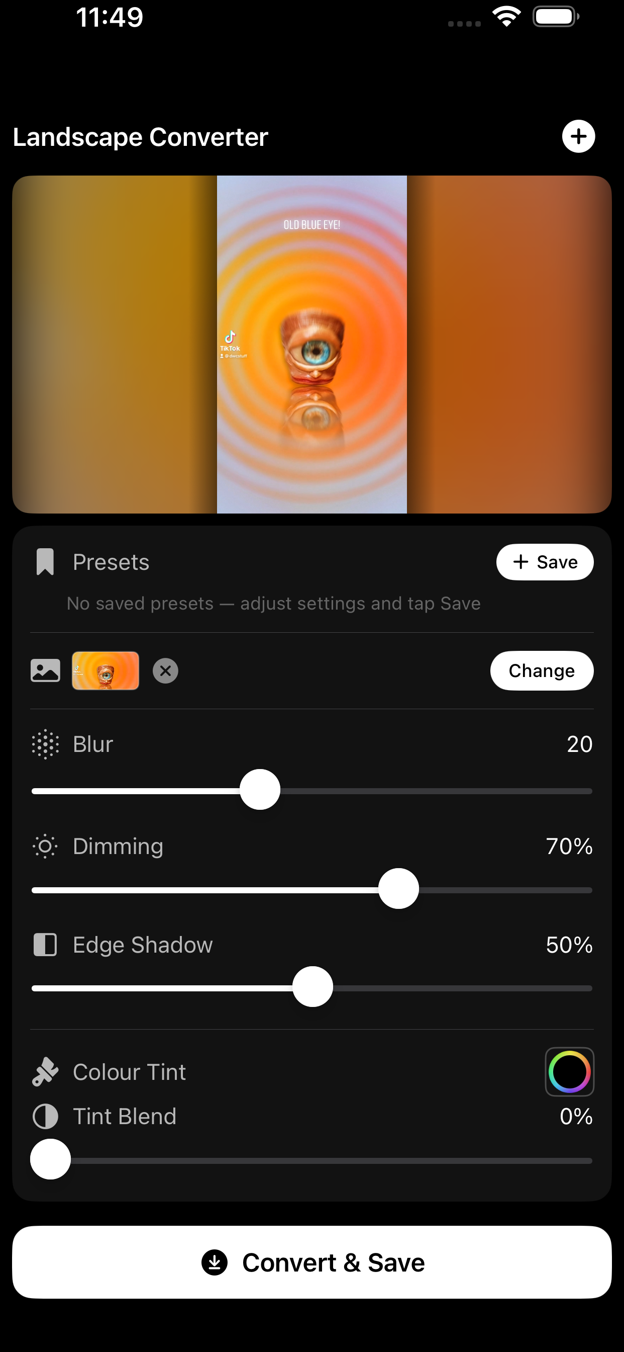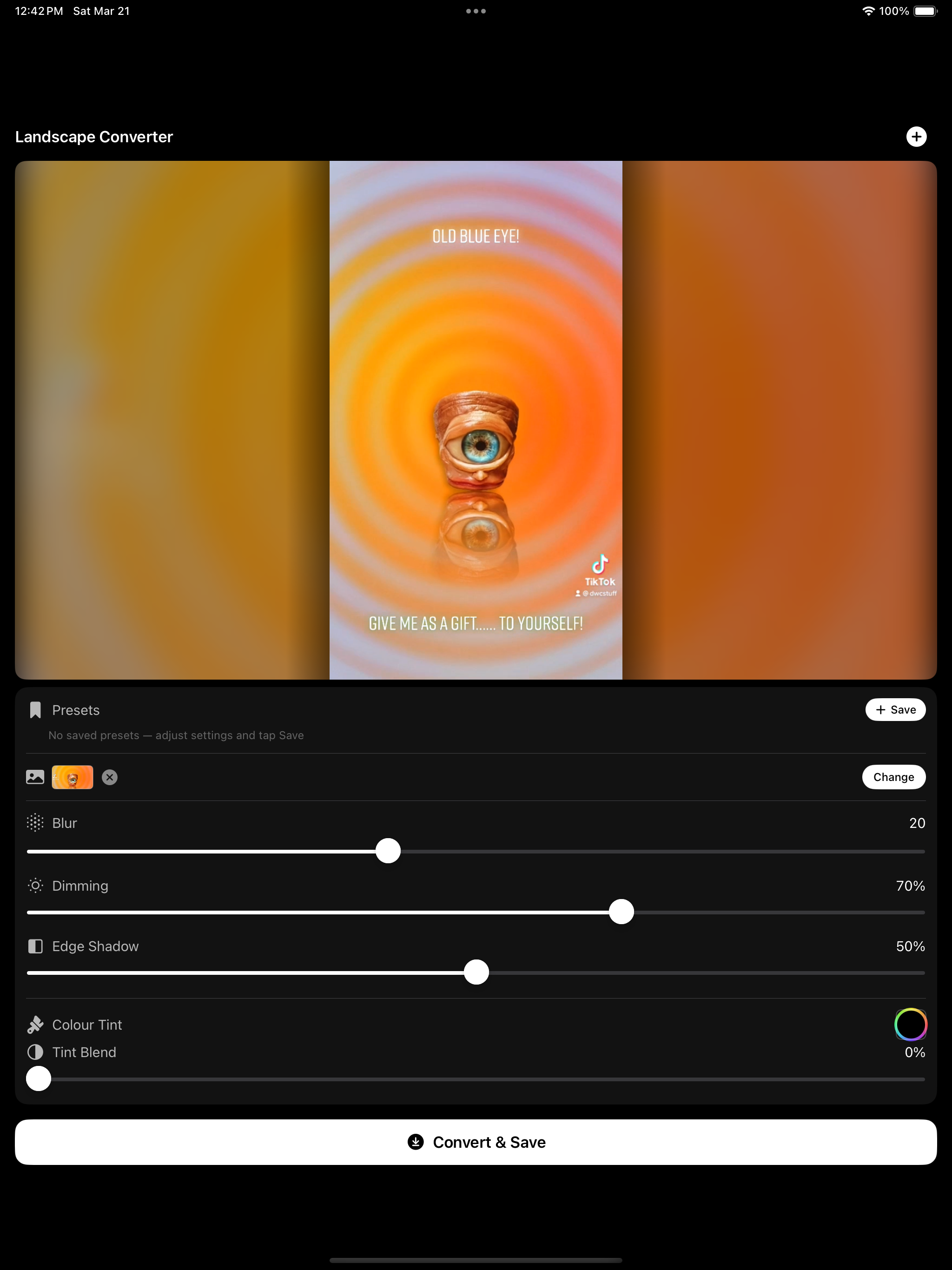 Simple. You load a vertical video. The app puts it in a 16:9 frame with a background behind it, a blurred version of the video itself, or your own image if you want something different. You adjust the background layer to taste, then save it out ready to upload.